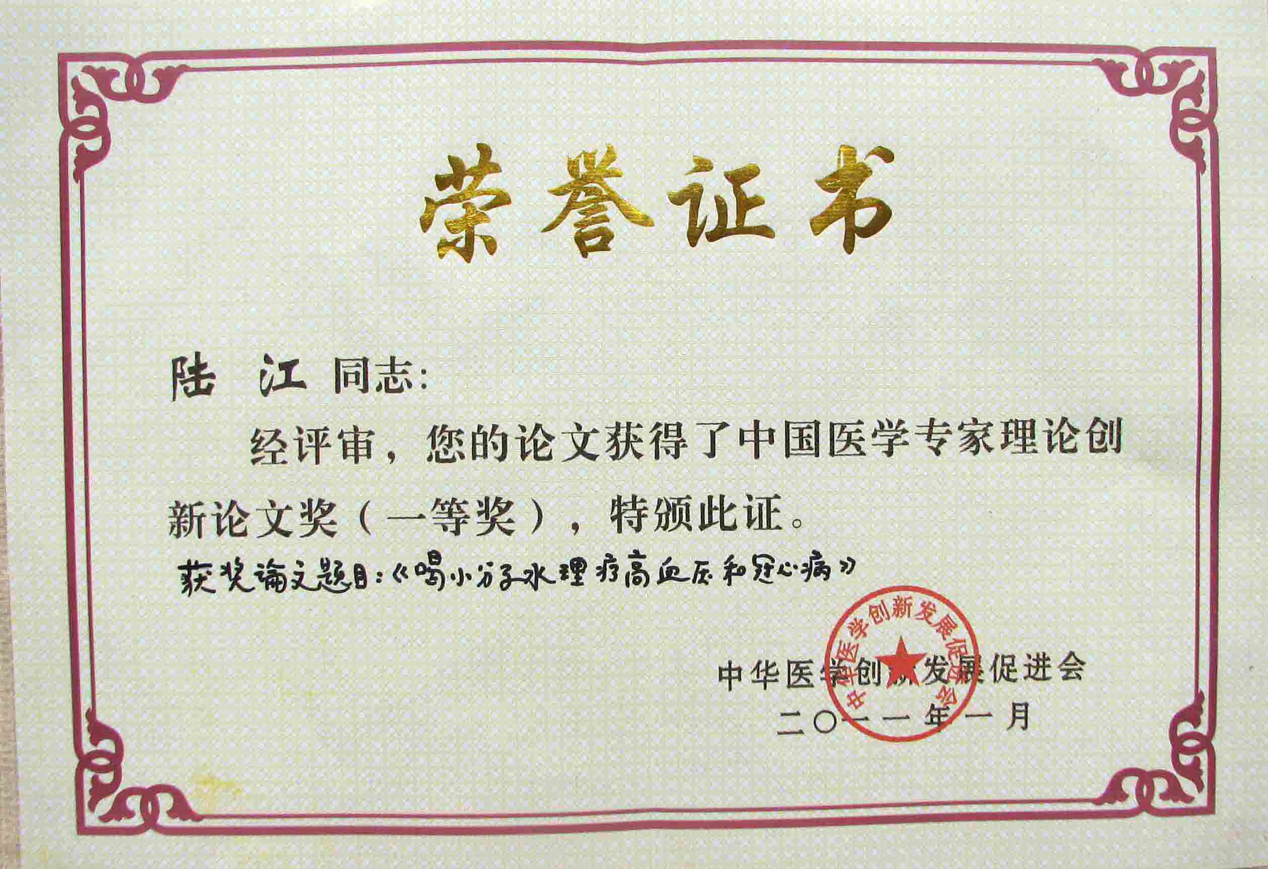 人類幾千年來患以上病癥需終生服藥,幾十年也不能治愈。可是我國南寧的高級工程師陸 江,于1990年想根治高血壓,研究發(fā)明了離子水瓶,處理出微小分子團水供飲用,經(jīng)過醫(yī)院臨床試用和專家鑒定,1999年獲中國發(fā)明專利權(quán),產(chǎn)品于2000年投放市場后一直跟蹤調(diào)查,據(jù)全國各地用戶反饋:祛除了高低血壓、糖尿病和冠心病,并使前列腺增生、咽喉炎、鼻竇炎、慢性氣管炎、支氣管炎、矽肺病、哮喘、慢性胃炎、腸炎、慢性膽囊炎、慢性腎炎、腎衰、膀胱炎、便秘、痔瘡、風濕性關(guān)節(jié)炎和濕疹皮炎及中風后遺癥等病癥不藥而愈。為什么喝微小水能治20多種病?陸 江從1991年德國科學家發(fā)現(xiàn)細胞膜水通道僅為2納米獲得啟發(fā),認為多種器官患病是因細胞脫水,不能正常代謝和分裂增殖,才使器官細胞減少致衰弱萎縮而形成細胞缺水性病癥。22年來的實踐有力地支持了“細胞脫水致病”這一重要論點,表明喝微小水可滿足細胞的生理需求,補水就能祛病,是生命科學新亮點。